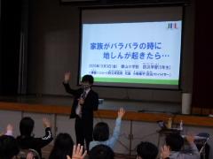 5年生の学習の様子です。「家族がバラバラの時に地震が起きたら・・」をテーマに学習しました。一人でいるときに大地震が発生した場合の対処方法や家族と話し合っておくべき内容のポイントなどについて、学びました。