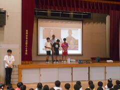 6年生の代表児童より、世界陸上で実際に使用するバトンについてと世界陸上についての紹介がありました。