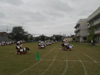 高学年は、ソーラン節と組体操を行います。友達と息を合わせます。