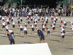 ラジオ体操で、自分の力を発揮できるように準備します。