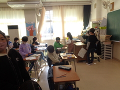 4年2組。担任のお話し中にお邪魔してしまいました。