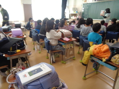 3年1組。冬休みの出来事を一人ひとり発表していました。