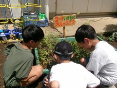ビオトープを観察する2年生