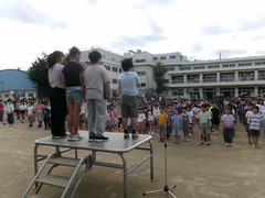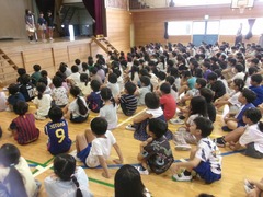 今日は久しぶりに全校朝会を校庭で行いました。これまでは暑さが心配で体育館で行っていたのです。10月になり、今年度も半分が終わり後半に入ったので、今日はどの学年の子も次の学年に進級することを意識して、日々を過ごしてほしいという話をしました。また、来週火曜日に移動教室に出発する6年生の代表がその決意を話すとともに、下級生に向けてのメッセージを伝えました。例年よりもインフルエンザの流行が早く始まっているようです。罹患することなく、元気に出発できることを祈るばかりです。