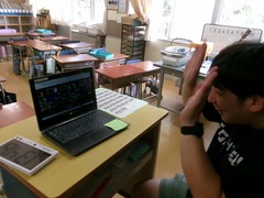 昨日は1時間目のまだ涼しいうちに、3年生のみなさんが学校近くの畑で枝豆の収穫体験をさせていただきました。また放課後にはあすなろ学級をのぞく2年生以上のみなさんが自宅から、タブレットを使ったオンライン授業の練習「オンラインドリル」に取り組みました。コロナ感染症が流行した時にオンラインでの授業が行われたことがあるのですが、今後同じようなことになった時に備えての練習です。どのクラスでも声と映像のやり取りができているかを確認しながら、クイズを出したり簡単なゲームをしたりして楽しんでいました。あすなろ学級のみなさんはオンラインドリルの練習を教室で行うことにしています。