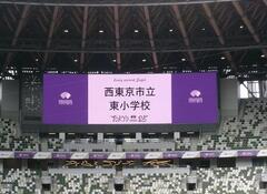 電光掲示板には東小の文字が!
