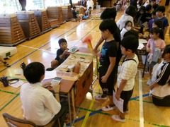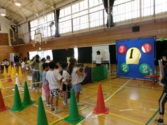 昨日と今日の二日間、東っ子祭りが行われました。昨日は6年生が準備したお店に4年生が2年生をエスコートしながら巡り、今日は5年生が準備したお店を3年生が1年生と一緒に楽しみました。お店は、的あてやボーリング、腕相撲に磁石の魚釣りなど様々です。5・6年生は下級生に喜んでもらえるように考え、協力して準備する力が求められるし、3・4年生は下級生を連れていく力が求められます。それと同時に、上級生になったらこれをやるんだ、こんなことができる、こうならなくっちゃ、といったいろいろな思いを育む場にもなっていることでしょう。どの学年の子もその学年なりの充実感や達成感、満足感を味わうことができる、そんな東っ子まつりでした。人気がすごくて時間切れになってしまったものの他は私もすべてのお店を回り、楽しませてもらいました。