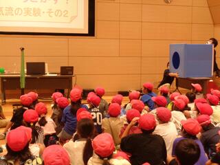 今回は副校長よりお伝えします。昨日は、4年生が理科見学として多摩六都科学館へ出かけました。科学館に到着すると、まずは「チャレンジの部屋」「からだの部屋」「しくみの部屋」「自然の部屋」「地球の部屋」の5つの部屋にある展示をグループごとに見学したり、体験をしたりしました。夢中になって取り組む中で、驚きがあり、感動があり、新たな発見が生まれたりと、科学に対する好奇心をますます高めていました。子どもたちの中には、しおりのメモ欄に、気付いたことや疑問に感じたことを記録している子もいました。次に、イベントホールに移動して学習プログラム「空気の性質を確かめよう!」を受講しました。これは、館内のスタッフの方による実験教室です。目には見えず、手で触れる実感をもつこともできない空気ですが、性質を知るとおもしろいことがたくさんありました。ビニール袋に空気を「集める」ことで、その袋の上に座ることもできれば、風船のようなゴムを破る力にもなることを確かめました(大きな風船がだんだんと膨らんでいく様子を見て、いつ割れるのかと、多くの子が冷や冷やしていましたが、割れずに済み、ほっとしていた様子が印象的でした)。空気を「引く」ことで、調理器具のボウルが、机から離れなくなる実験では、代表の子3人の力を合わせてもびくとも動かず、あまりの強力さに驚きの声が聞こえました。大人の力をもってしても動くことはなく、空気が無くなるとすごい吸着力であることを理解しました。他にも大型の空気砲が登場し、空気はドーナツ状に移動する様子を見ることができるなど、楽しく学ぶことのできる時間でした。おうちの方に用意していただいたお弁当を、おいしくいただいたあとは、東京都で最も大きなプラネタリウムで、東小の空で見える星座や月の動きなどを確認したり、月旅行を映像で疑似体験したりすることができました。実は、今回の見学では、副校長から子どもたちにミッションを伝えていました。それは、今日の見学の中で、「なぜだろう・調べたいな」と思うことを1つは見つけようというものです。ぜひ、今回の体験を通して得た疑問を、時間のあるときにご家庭などで調べたり、実験したりして学びを深めたり、広げたりしてほしいと思います。