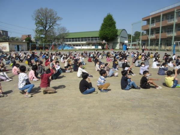 通常は体育館で行っていますが、コロナ禍のため校庭で行いました。