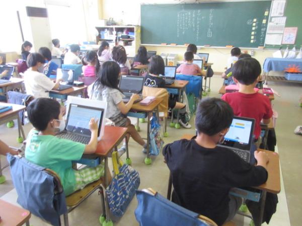 PTA見守り隊の方々に、「チーム東伏見のタブレット」でお手伝いをお願いしました。2年生はタブレットの扱いに慣れ、自分で進んで学習していました。見守り隊の方々も感心していらっしゃいました。