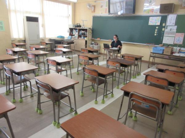 9月1日から3日まで、2年生から6年生は、2クラスを3グループにします。これから、机移動をします。