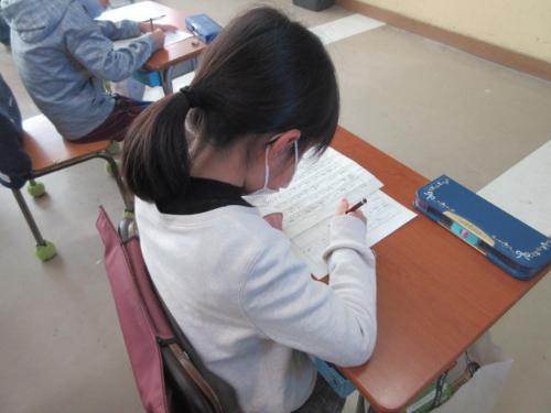 地震を想定した訓練でした。校舎内にいては危険だと判断した場合、避難途中の場所で危険な場所があるかもしれません。今回は避難途中に通れない階段があるという想定にしました。お・か・し・もを守って真剣に訓練をすることができました。