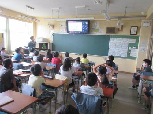 朝の時間はオンラインで栄養士から食育のお話がありました。夏休み期間中は、学校がある時との食生活にも違いがあったことでしょう。