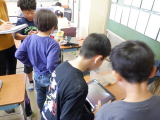 3年生 総合 石神井川で調べたことをまとめたり生き物の写真を撮ったりしています。