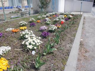校庭の桜の木々や花壇の花々、1年生が植えたチューリップの花も、元気に育っています。卒業式、入学式当日はどれもきれいな花を咲かせてくれると嬉しいです。