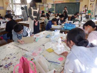 6年生は、図工「未来のワタシ」の製作が順調に進んでいます。いよいよ着色の工程に入りました。細かなところまで塗り残しのないよう、丁寧に作業を行っています。こちらも、完成が楽しみです。