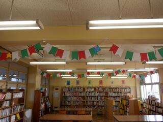 図書ボランティアさんが図書室にクリスマスの飾りを作ってくださいました。