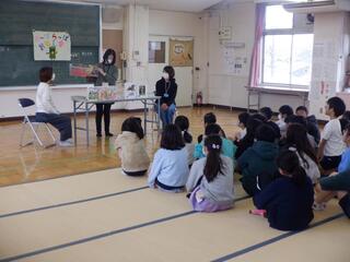 4年生では、「クジラ博士の特別授業」がありました。前回学級閉鎖で延期となり、本日の開催となりました。クジラの生態やそのほかたくさんのことを学びました。最後は体育館に広げた等身大のクジラのシートの上に乗り、みんなで記念写真撮影を行いました。