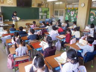 1・2年生の校内探検も行いました。2年生がたくさん準備をして、1年生をしっかり案内していました。