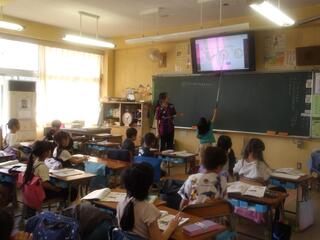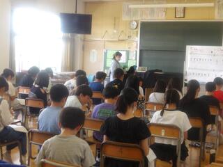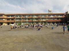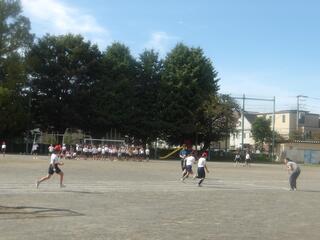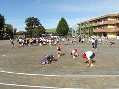 朝から全校で校庭の石拾いを行いました。運動会に向けての準備です。