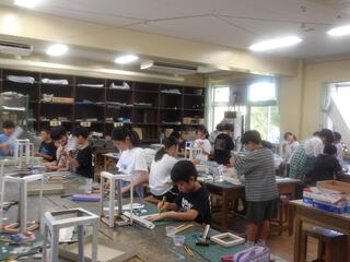 4年生は図工でビー玉ころがしを作ります。今日は土台作りを行いました。すべり台部分はこれからですが、完成が楽しみです。