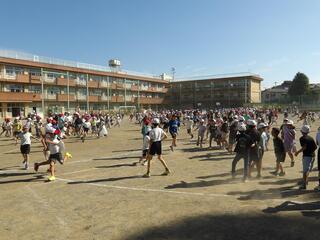 集会委員の考えた「〇□△ゲーム」という鬼ごっこのようなゲームを行い、最後まで残れた児童には拍手がおくられました。