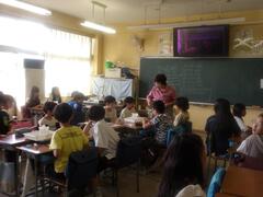 4年生は理科で、閉じこめられた水は押しこめられるのか実験を行いました。前回空気で行った時とは違い、全然押しこめられない結果にとても驚いていました。