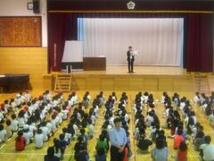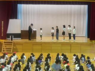 全校朝会では、読書感想文の表彰を行いました。校長先生からは秋についてのお話がありました。