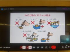 今日は食育集会がありました。食器とお箸の使い方についてのお話でした。動画を見ながら鉛筆でお箸の練習も行いました。
