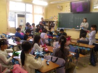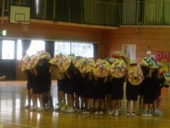 だんだん運動会が近づいてきました。2年生はそれぞれの花笠を作り、それを持って練習していました。あいにくの雨で室内練習でしたが、とてもきれいでした。