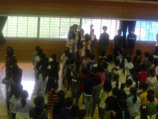 開閉会式練習を行いました。朝は雨が降っていたため体育館で行いましたが、運動会が近づいてきたことを実感しました。