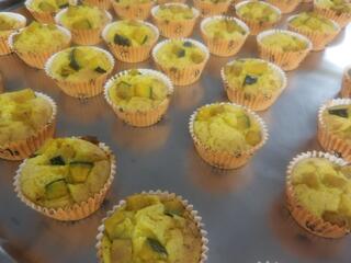 今日はハロウィンです。給食でかぼちゃケーキが出ました。甘くてもちもちで子どもたちにも職員にも人気でした。