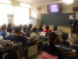 4年生は理科でヘチマの観察をしていました。大きく育ったヘチマと、それを輪切りにしたものを観察し、写真を撮ったり絵をかいたりしました。