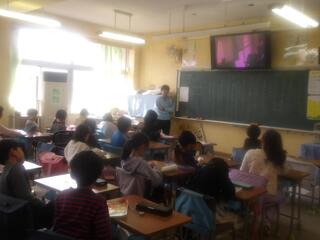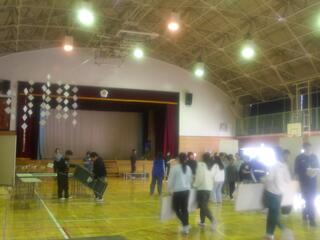 6年生は展覧会の会場準備を行いました。教室から体育館へ机などを手分けして運びました。