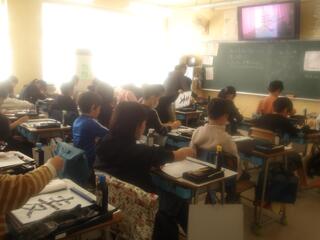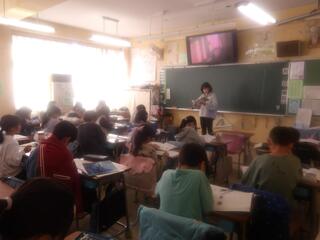 5年生は脊柱側わん検査を行いました。検査についての説明を受けてから、1人ずつ見てもらいました。