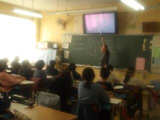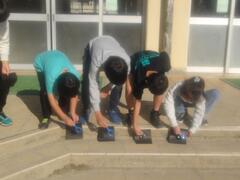 3年生は理科で実験を行いました。虫めがねで光を集め、黒い折り紙に穴が開く様子を観察しました。