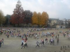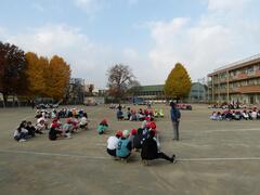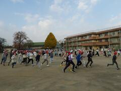 マラソン旬間が始まりました。朝のマラソン集会と中休みに全校でグラウンドを走りました。