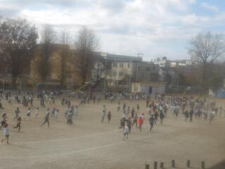 マラソン旬間中なので、中休みに全校でマラソンをしました。