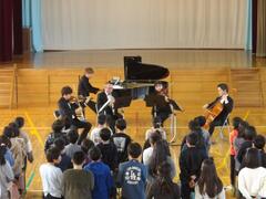 東京NANAIROアンサンブルの方にお越しいただき、音楽鑑賞教室を行いました。奏者と楽器を紹介では、それぞれの楽器の素敵な音色を聴かせていただきました。威風堂々や星に願いを、ケセラセラなど様々な曲を合奏していただき、児童はとても楽しそうに鑑賞していました。