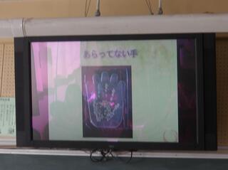 手についたバイキンは手を洗わないと増えてしまうので、しっかり手洗いをしましょうというお話でした。