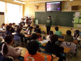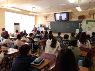 今日は代表委員会集会を行いました。委員長からはじめの言葉と仕事の内容をオンラインで紹介しました。その後、6年生の代表委員が各クラスに贈る言葉を伝えに行きました。