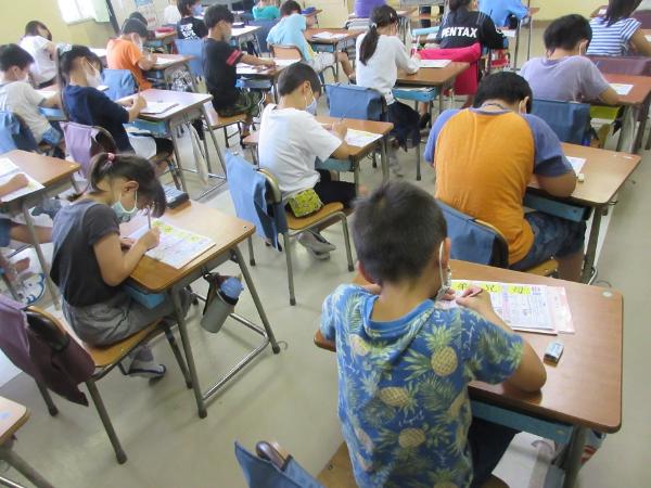 台風の影響か、子どもたちの登校時刻に雨が強くなり、登校を終えた頃に雨がやみ、中休みにまた雨が降ってきました。