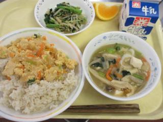 3学期最初はお正月メニューです。食文化の継承を考慮し七草汁風、黒豆等を出しました。