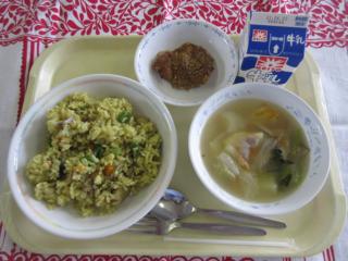 5月5日のこどもの日のメニューとして給食では中華ちまきがよく作られていました。今日は中華おこわです。