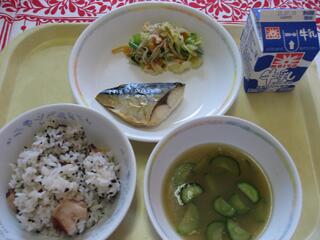 半夏生にちなんでたこを使った、たこ飯を作りました。稲の根がたこの足の様に根をはっていくことを願います。