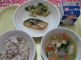 秋の野菜の春菊や大根を使ったメニューになっています。魚はぶりの照り焼きです。