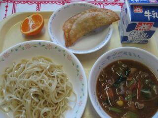 今日は味噌ラーメンに、揚げ餃子です。月曜日は学校に来たくなる様な献立を組んでいます。