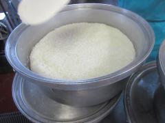 そして、回転釜には、炊飯釜二釜分およそ24kg分のご飯を入れます。具と均等に混ぜるのも、調理員さんの腕の見せ所です!