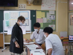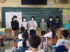 5年1組の「学級力向上プロジェクトのスマイルタイム(話し合い)」を、早稲田大学や横浜国立大学の教授や大学院の先生方が参観に来られました。1学期始めのアンケート結果と1学期末のアンケート結果を比較して、自分たちのクラスの成長したところや課題等を話し合う授業です。話し合いの中で、ある子からは「みんな積極的になり、他人のよいところを見つけられるようになったと感じます。そこで今後の提案として…」等の意見が出るなど、活発な話し合いでした。
