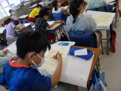左側の写真は、3年生の学習の様子です。3年生は理科の学習で「ひまわりとほうせんかの種の観察」をしていたのですが、虫眼鏡を使って真剣に観察している様子が可愛らしくて、思わずシャッターを切りました。